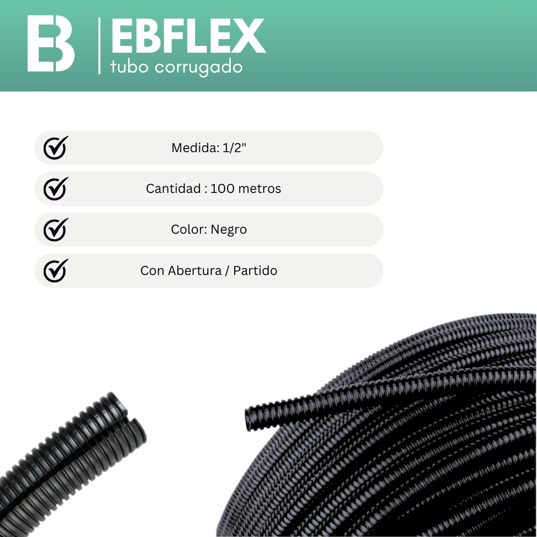 CORRUGADO 1/2 (100 METROS) NEGRO ABIERTO – EBFLEX